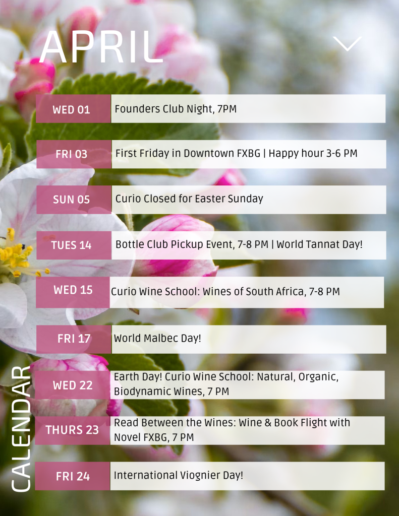 Curio Wine Bar is closed Sunday, April 5 for Easter. Happy Easter to all who celebrate!